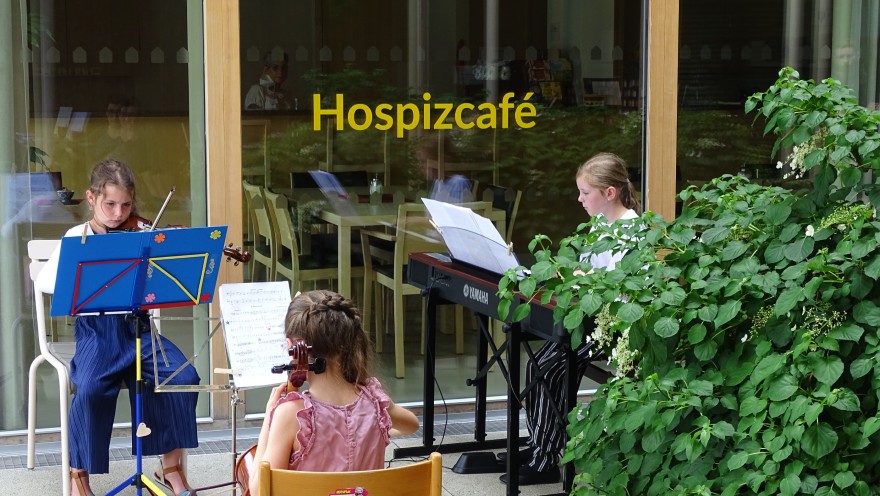 Bei Sommertemperaturen genossen die Zuhörer*innen, am 4. Juni 2021, ein wunderbares Konzert der jungen Musiker*innen vor dem Hospizhaus Tirol.