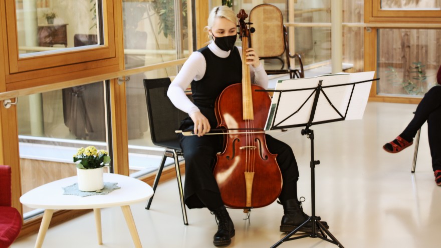 Der Klang des Barockcellos erfüllte den Raum und die Zuhörer*innen genossen die Musik sichtlich.