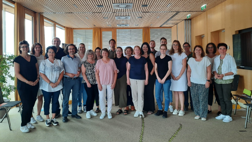 Hospizkultur und Palliative Care im Pflegeheim ist ein 2-jähriger Prozess, der in Tirol bereits von 14 Heimen abgeschlossen bzw. gerade durchlaufen wird. Einmal jährlich kommen Vertreter*innen aus diesen Heimen mit den Prozessbegleiterinnen und dem Geschäftsführer der THG, Werner Mühlböck, sowie Vertreter*innen vom Landesinstitut für Integrierte Versorgung (LIV) – in diesem Jahr Susanne Krestan und Annemarie Rotter – im Hospizhaus zum Vernetzungstreffen zusammen. Am 27. Juni 2023 tauschten sich Palliativbeauftragte, Vertreter*innen der Palliativgruppe, zum Teil auch Pflegedienstleitungen und Heimleitungen aus 11 Heimen einen Nachmittag lang über ihre Erfahrungen mit dem Projekt bzw. den Arbeitsergebnissen aus. Zusätzlich erfuhren die Teilnehmer*innen Neues über das Systemische Konsensieren von Prozessbegleiterin Barbara Kleissl.