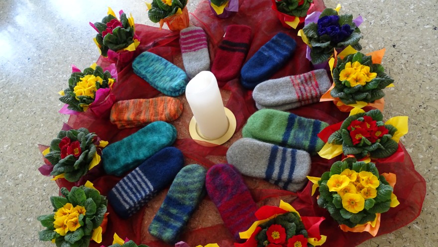 Rosa nützte die langen Winterabende und strickte für alle Teilnehmer*innen wunderschöne, ganz warme Patschen. Ein schönes Zeichen der Hospizlichkeit!