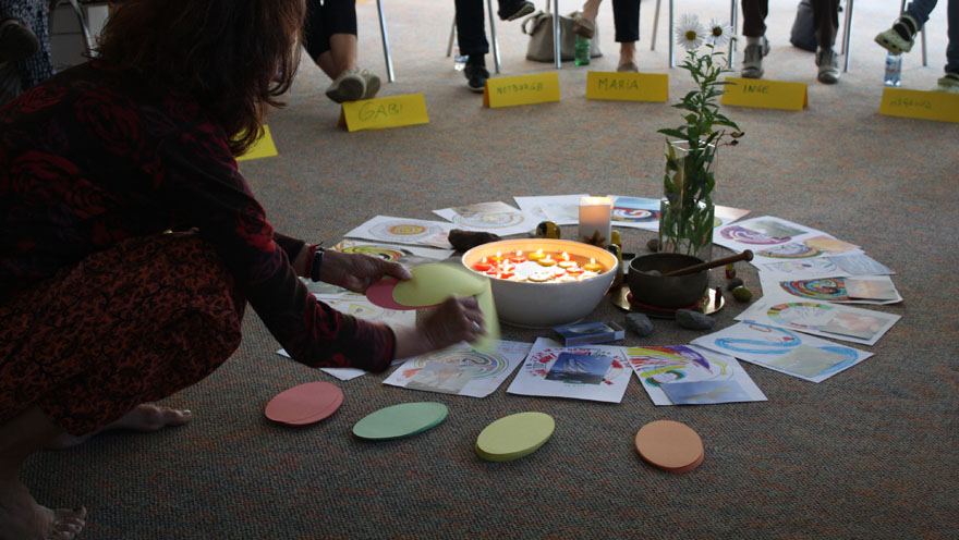 Im Austausch mit den anderen, in angeleiteten Übungen, beim Malen, Tanzen oder in einem Ritual ging es darum, meinen eigenen Trauer- und Verlusterfahrungen Ausdruck zu verleihen, um so die Wunde langsam heilen zu lassen.