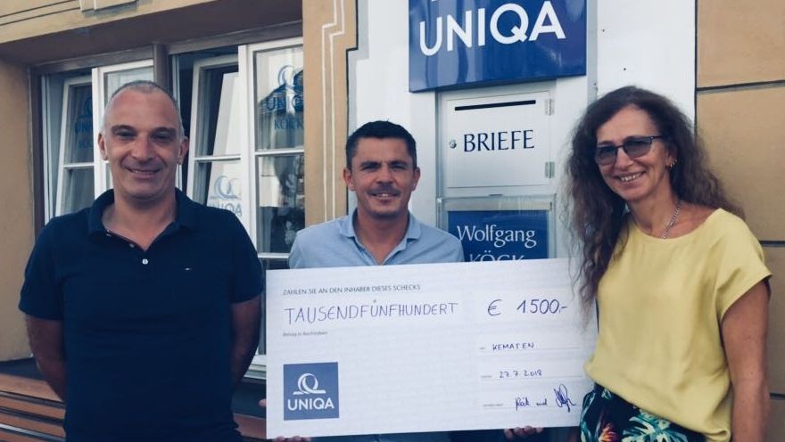 Bei ihrer Büroeröffnungsfeier Ende Juli am Dorfplatz in Kematen haben sie ein „Spendenschweindl“ aufgestellt und dabei 1.300 Euro unter den BesucherInnen und MitarbeiterInnen gesammelt. Der Betrag wurde von der Uniqua großzügig auf 1.500 Euro aufgerundet und Anfang Juli der Pflegedirektorin der Tiroler Hospiz-Gemeinschaft, Christine Haas-Schranzhofer, überreicht. Die Tiroler Hospiz-Gemeinschaft dankt sehr herzlich für die Unterstützung kranker Kinder und Jugendlicher!