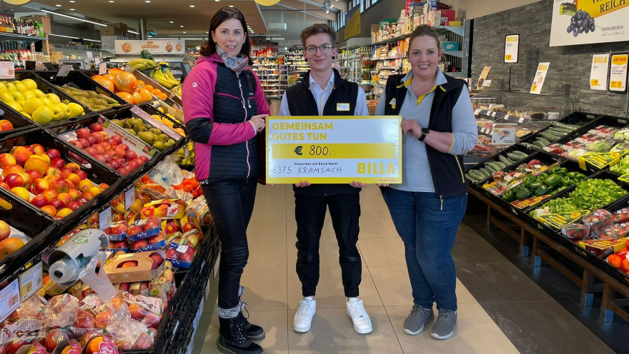 Im Bild: Regionalbeauftragte Emanuela Staudacher-Egger, Billa-Filialleiter Christian Lederer und seine Stellvertreterin Martina Moser bei der Scheckübergabe im Jänner (v.l.n.r.)