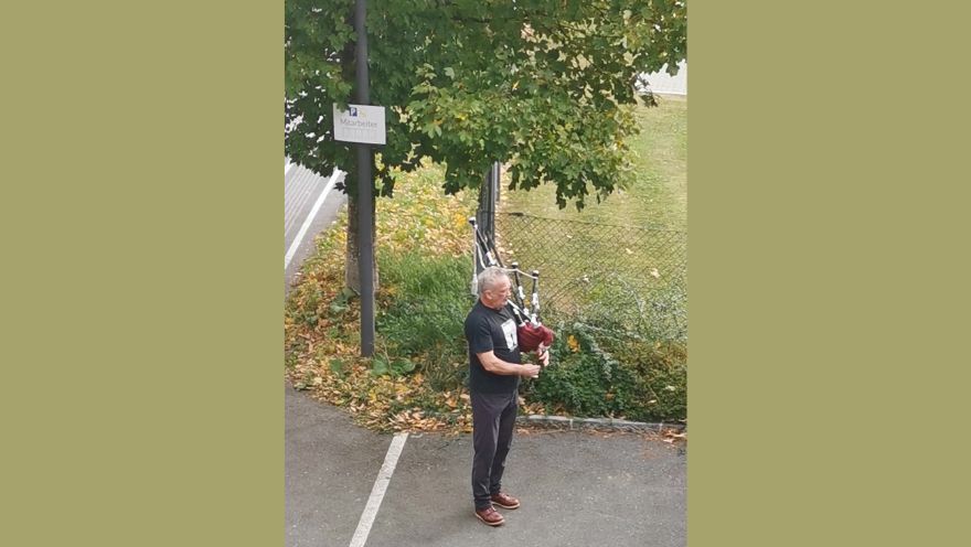 Carson hat auf seinem Dudelsack ein letztes Mal für seine verstorbene Frau Regina gespielt.