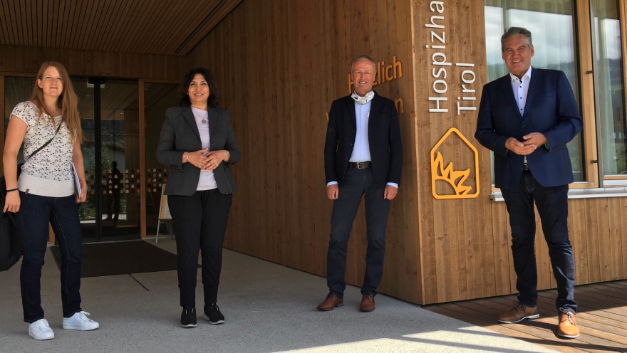 Die Abgeordnete zum Nationalrat Mag.a Selma Yildirim besuchte gemeinsam mit ihrer parlamentarischen Mitarbeiterin Mag.a Julia Hitthaler und dem Caritasdirektor Georg Schärmer unser Hospizhaus. Bei einer Führung durchs Haus und im persönlichen Gespräch machten sich die Besucherinnen ein Bild über die Hospiz- und Palliativarbeit in Tirol und holten sich Meinungen von Praktiker*innen zum Thema „aktive Sterbehilfe“ ein.