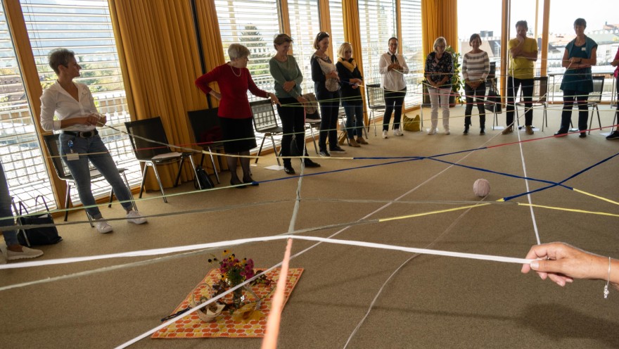 Es war die Zeit um sich näher kennen zu lernen, wieder einmal mehr voneinander Bescheid zu wissen, Erfahrungen und Eindrücke auszutauschen. Ein dicker Knäuel aus einer selbstgehäkelten Schnur wurde als Verbindung untereinander von einem zum anderen geworfen und so entstand ein schönes und buntes Netz das uns zusammenhält. Da ein jeder nicht nur seinen Namen nannte, sondern auch mitteilte was seine Lieblingsspeise war, hatten wir am Ende eine schmackhafte Ansammlung von kulinarischen Gelüsten.