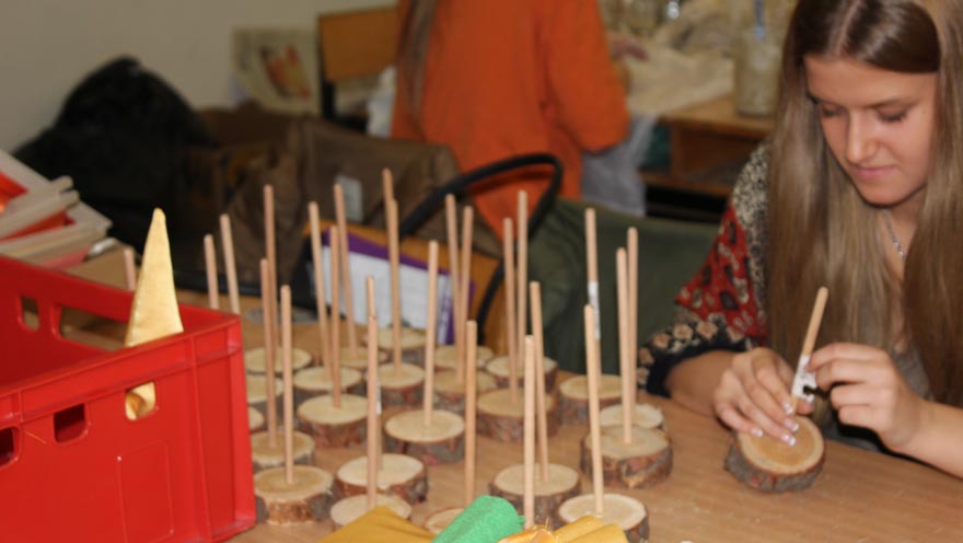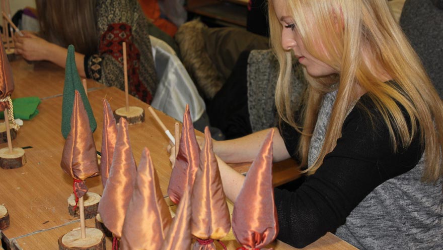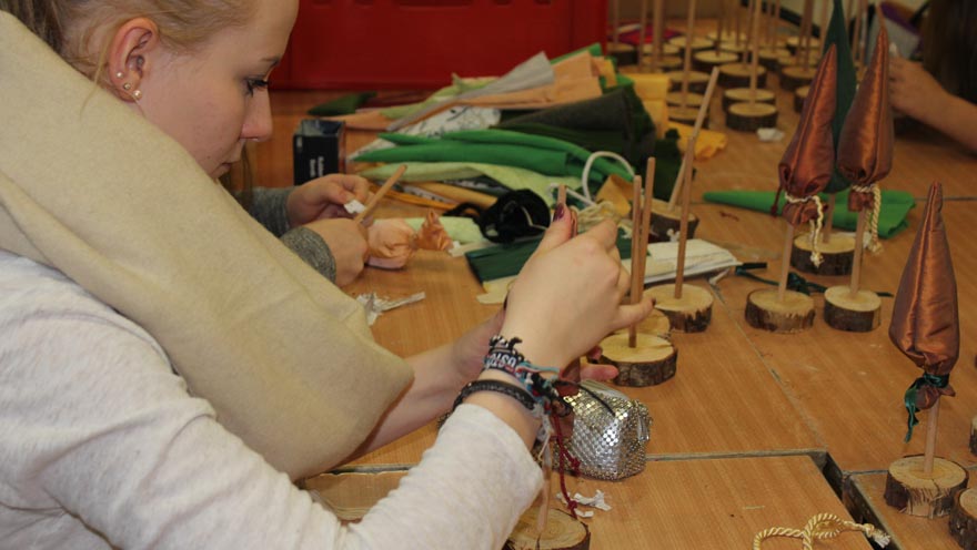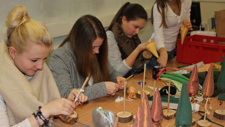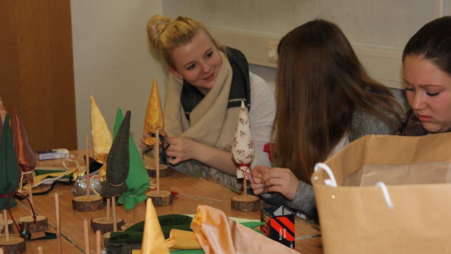 Was tun junge Mädchen und ein Bursch der dritten Klasse Ferrarischule in der Vorweihnachtszeit? Wie die meisten jungen Menschen gehen sie einkaufen, treffen sich mit Freunden und schreiben viele Tests und Schularbeiten. Aber nicht nur das: Die dritte Klasse des Humanökologiezweiges fertigten unter Anleitung ihrer Professorin Christine Jäger Zirbenbäumchen. 200 Stück – aus Wollstoff, Seide, gefüllt mit duftenden Zirbenspänen und aufgesetzt auf eine Holzscheibe.