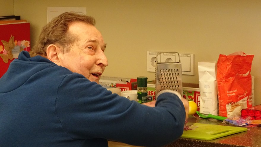 Hans ist Patient im Hospiz. Er kochte am Faschingsdienstag im Tageshospiz groß auf. Das Spitzenmenü zum Faschingsdienstag schmeckte den Patient*innen und Mitarbeiter*innen vorzüglich.