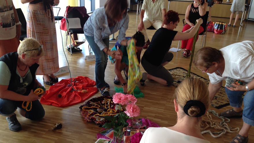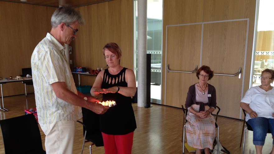 Die TeilnehmerInnen der Ausbildung zur ehrenamtlichen Hospizbegleitung in Oberdorf beschäftigten sich beim vergangenen Ausbildungswochenende mit dem Thema „Glaubensbilder und Rituale“. Die ReferentInnen waren Eberhard Mehl und Christa Sommerer.