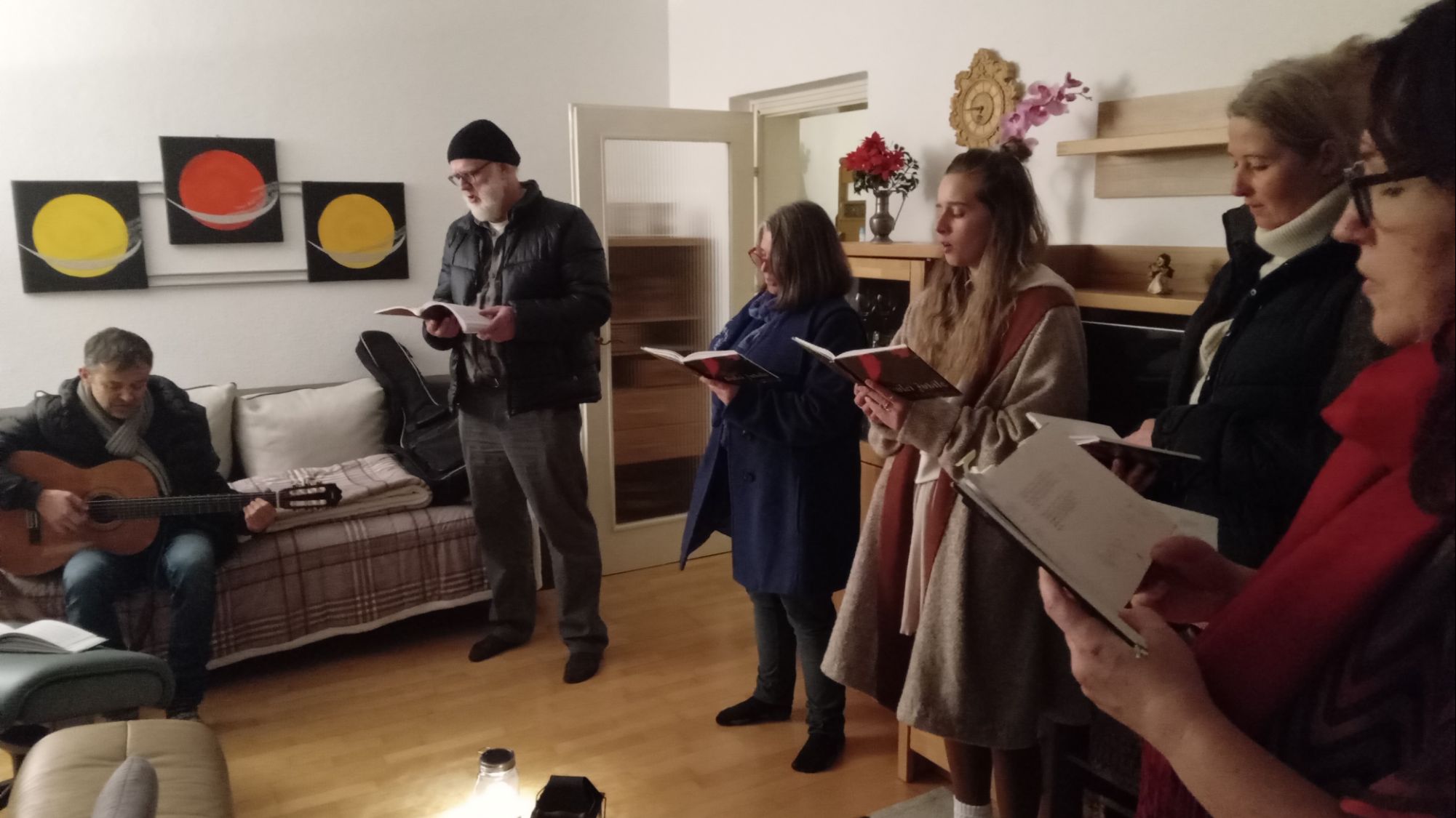 Wo sind denn heutzutage noch Anklöpfler unterwegs? Bei uns! Zwei Gruppen – einmal ehrenamtliche Hospizbegleiterinnen und tags drauf eine Gruppe vom hauptamtlichen Palliativteam haben sich auf den Weg gemacht, um bei Patientinnen anzuklopfen, um Einlass zu bitten und mit ein paar Weihnachtsliedern Freude zu schenken.