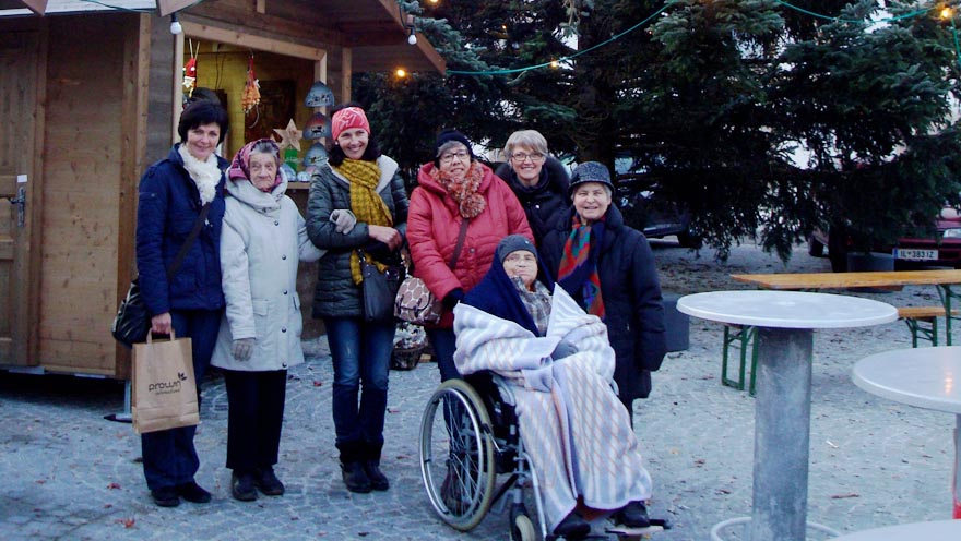 Wir Hospizbegleiterinnen erlebten mit unseren zu betreuenden Personen einen stimmigen Nachmittag am Inzinger Christkindlmarkt. Unter dem riesigen Christbaum ließen wir uns weihnachtlich einstimmen und genossen Kaffee, Kakao, Glühwein und Kuchen.