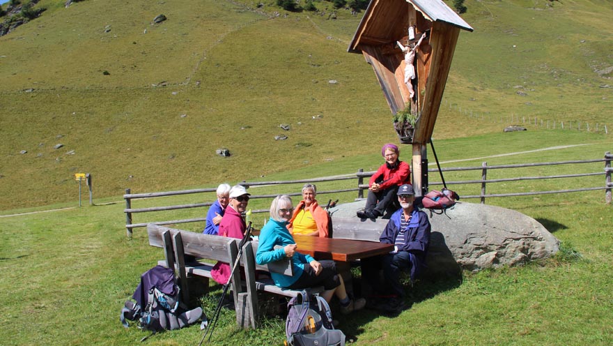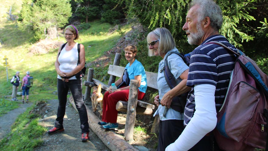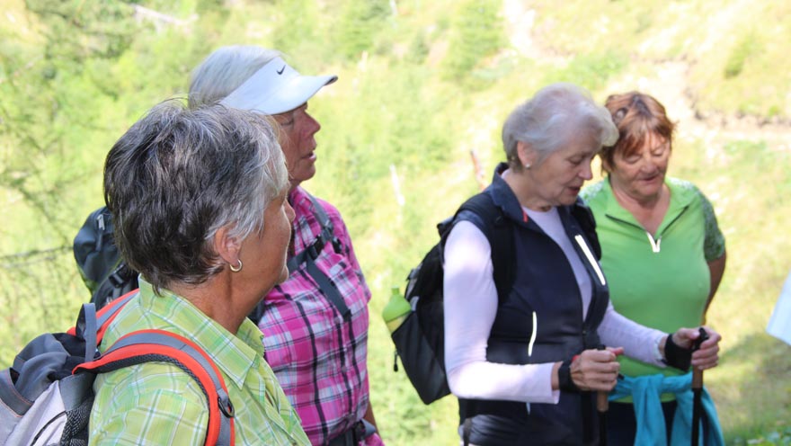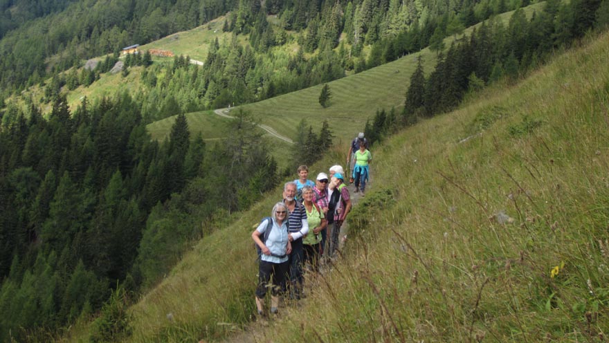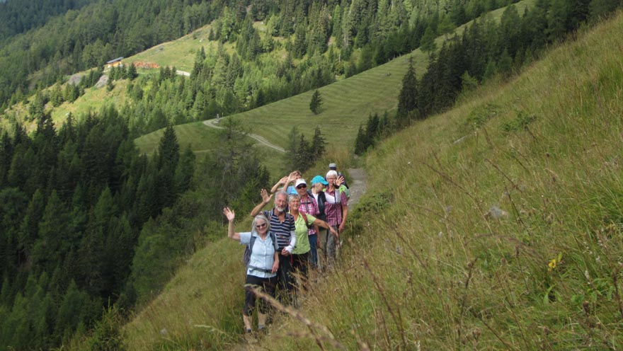Wir atmen die Kraft der spätsommerlichen Sonne, Wiesen und Berge, genießen die Freude in Gemeinschaft unterwegs zu sein.