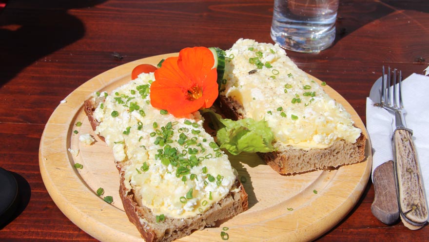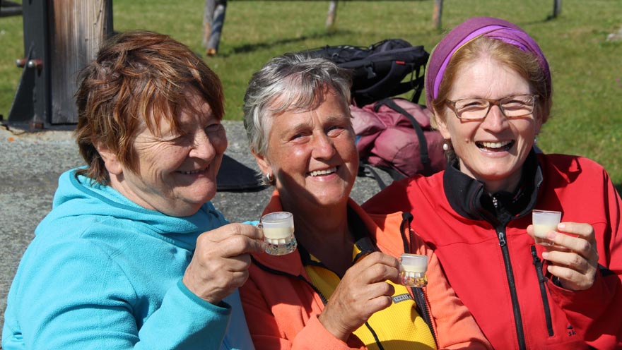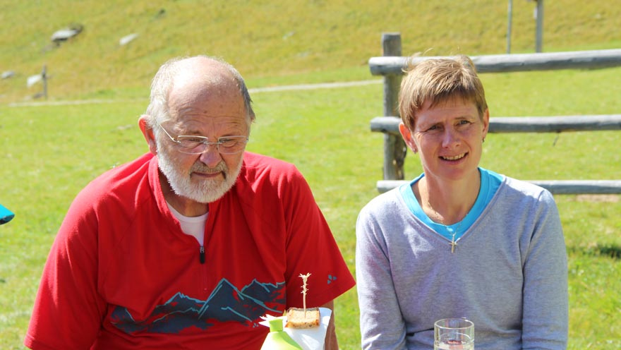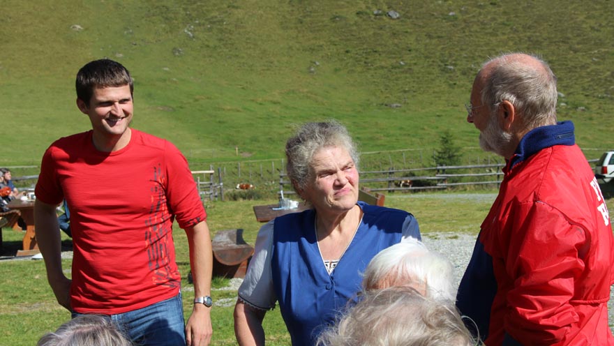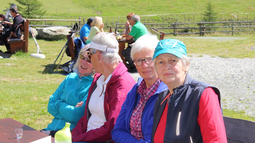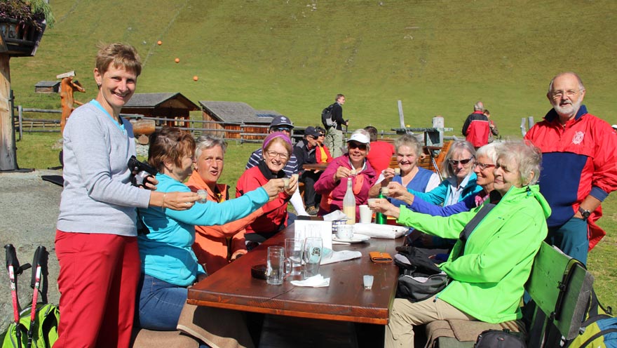 Der traditioneller Ausflug der Hospizgruppe Osttirol auf die Schmiedler Alm. Theresia Lang, EA im Hospizteam Virgen/Kals, rührige Bäurin und Almhüttenwirtin verwöhnte uns mit herrlichem selbstgemachten Brot, Graukäse, köstlichen Suppen und Kiachlen, Kaffee und Kuchen.