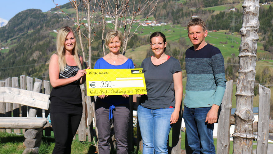 Die Jungbauernschaft Piller nutzte die derzeit beliebte Aktion der „Grillpool-Challenge“ und übergab den Erlös dieser Aktion als Spende an das Hospizteam Pitztal.