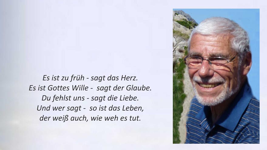 Eine ehrenamtliche MitarbeiterIn hat mir vor zwei Tagen von ihrer letzten Begegnung mit Walther erzählt. Walther am Aquarium arbeitend sagte zu ihr: „Ich wünsche mir, dass es schnell geht, dass ich schnell sterbe. Ich möchte nicht so lang und hilflos daliegen“. Walthers Tod war für seine Familie, für uns alle plötzlich und überraschend. Ein Schock. Und es schmerzt und tut weh. Zugleich ist aber auch sein Wunsch, dass es schnell gehen soll, in Erfüllung gegangen. Walther, ich danke dir nochmals für alles. Ich wünsche dir, dass du es gut hast, dass du lebst, auflebst im neuen Leben. Und dass dein neues Leben noch schöner wird als das Leben in der von dir so schön und liebevoll gepflegten Fischaquarienwelt.
