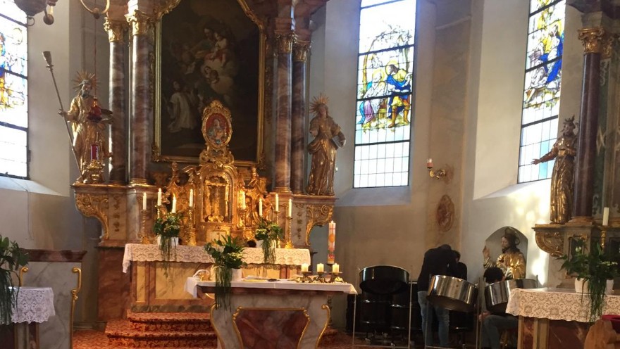 Das Bild zeigt den Gottesdienst in Obsteig mit Steel Drums (Johannes, Simon und Benjamin), die diesen musikalisch umrahmten.