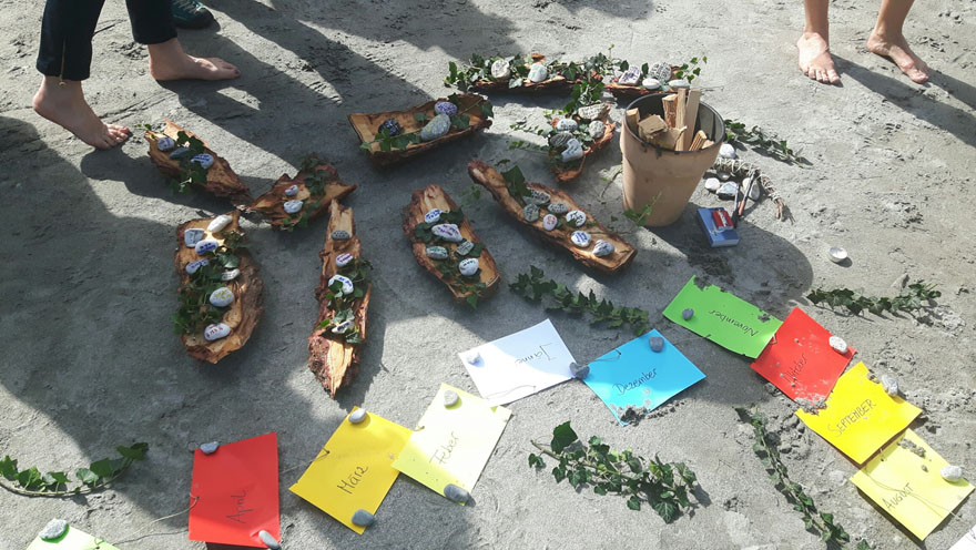 Miteinander haben sich nochmals alle von den von ihnen begleiteten und verstorbenen Menschen verabschiedet. Die beschriebenen Steine wurden dem Wasser übergeben.