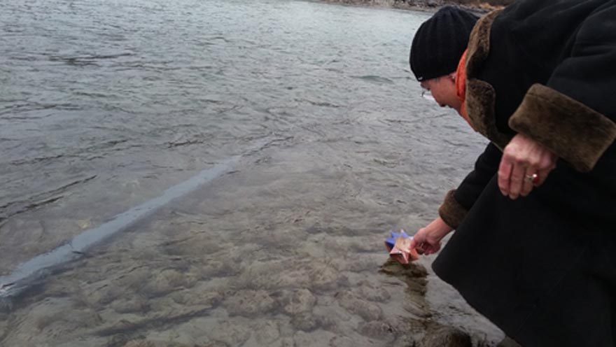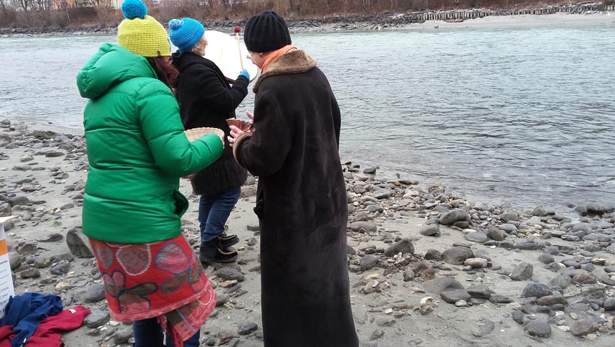 Am Anfang des Jahres treffen sich haupt- und ehrenamtliche MitarbeiterInnen des mobilen Palliativteams Innsbruck/Land zum großen Jahresverabschiedungsritual am Inn. Die Steine mit den Namen all jener Menschen, die im vergangenen Jahr begleitet wurden und verstorben sind, werden dem Fluss des Lebens übergeben.