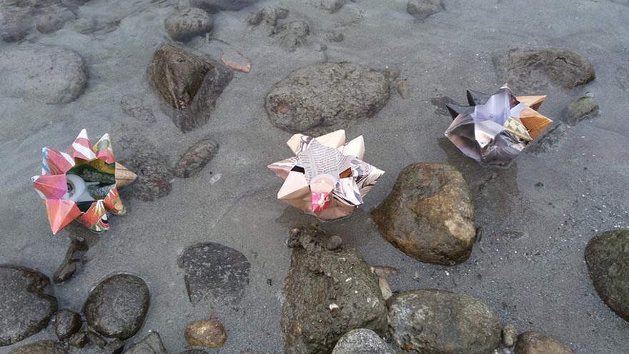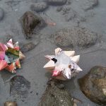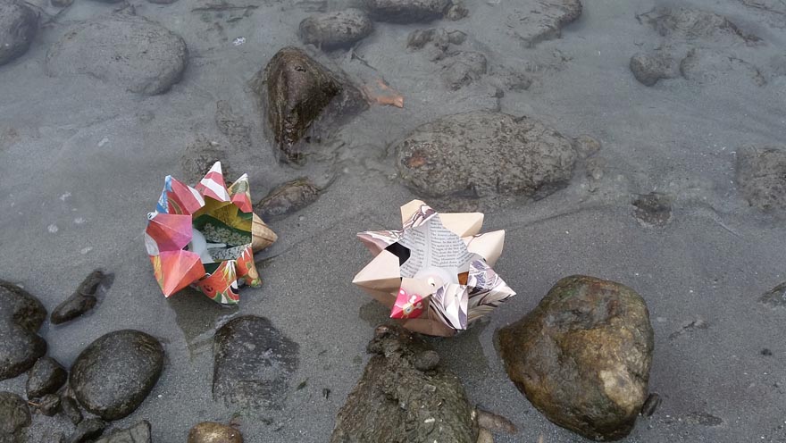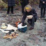 Die Verabschiedung beginnt mit einem Räucherritual. 202 Namen wurden vorgelesen und die Steine dem Wasser übergeben. Lichter werden als Begleiter mit auf den Weg geschickt. Allen werden Gedanken mit auf den Weg gegeben: