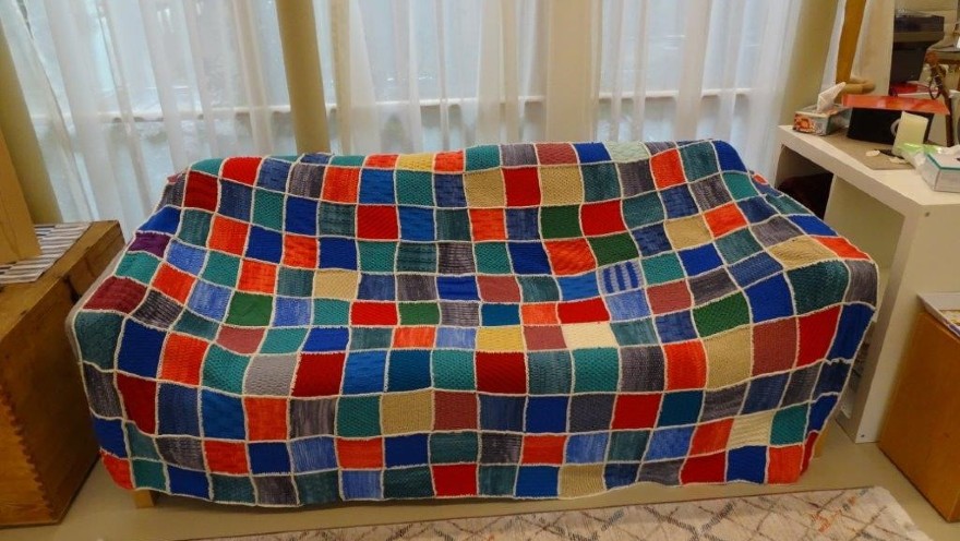Wer das Tageshospiz in der der Tiroler Hospizgemeinschaft in Hall betritt, dem sticht eines sofort ins Auge: die bunte Tagesdecke auf dem Sofa. Sie besteht aus vielen einzelnen farbigen gestrickten Quadraten. Jeder einzelne Fleck wurde von einer Patientin oder einer ehrenamtlichen Mitarbeiterin des Tageshospizes gestrickt.