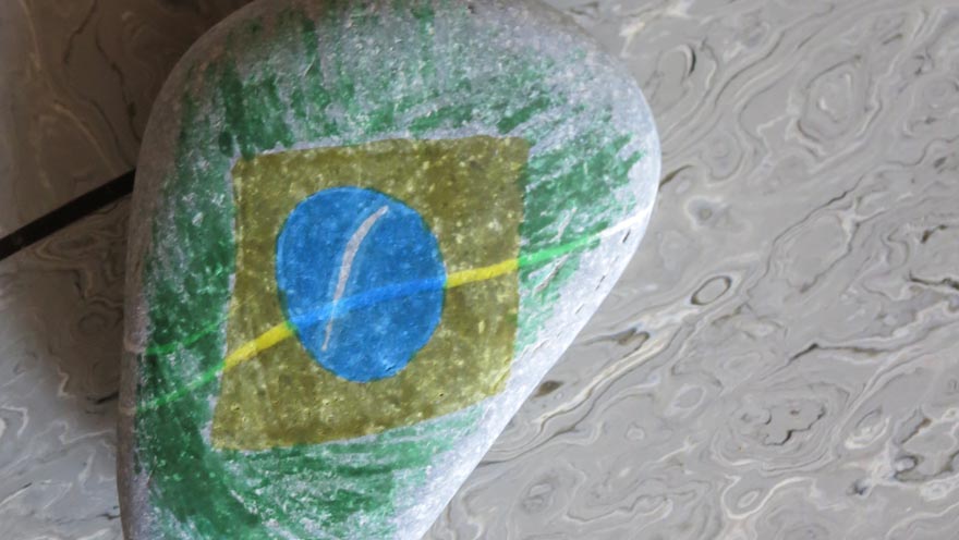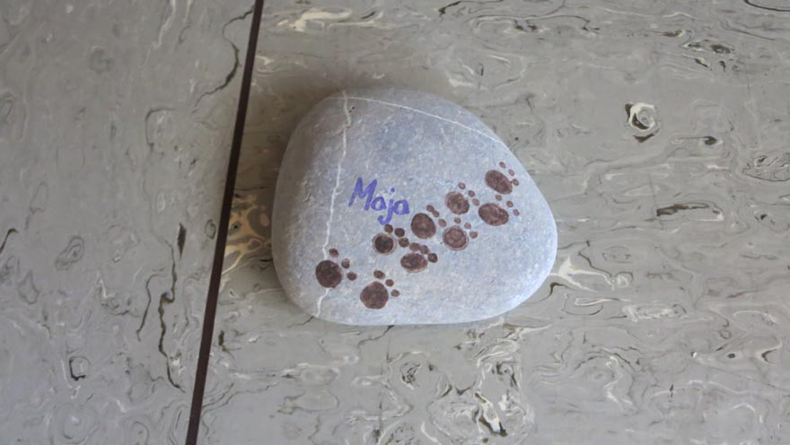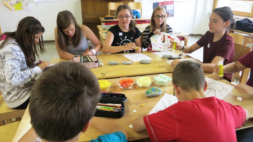 Die SchülerInnen gestalteten in der Vorstellrunde einen Stein. Ein Stein trug zum Beispiel das Symbol zur Fußballmeisterschaft und symbolisierte die Liebe zum Fußball. Ein anderer Stein enthielt Fußspuren von Tieren und zeigte die Liebe zu den Tieren.