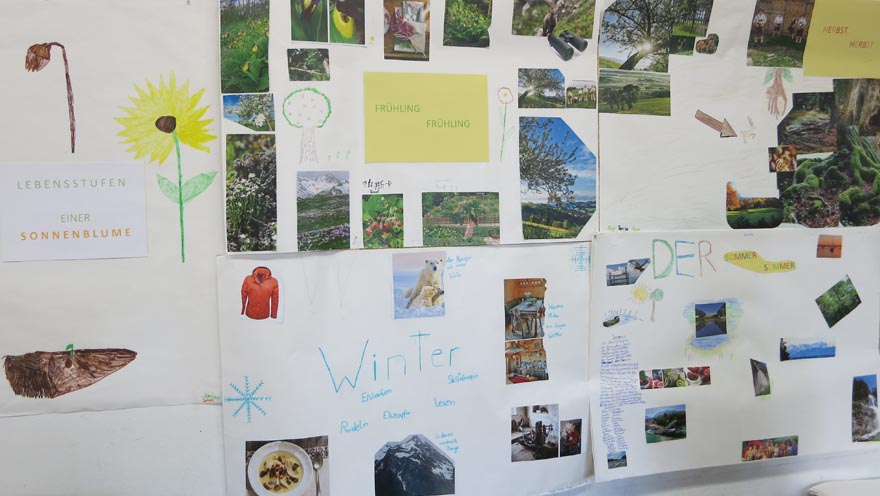Im Anschluss erhielten die SchülerInnen einen kurzen Überblick über das Hospiz, seine Entstehung, die Entwicklung in Tirol und in der Region. Zum Thema „Sterben“ wurde ein Jahreskreislauf und die Lebensstufen einer Sonnenblume gestaltet.