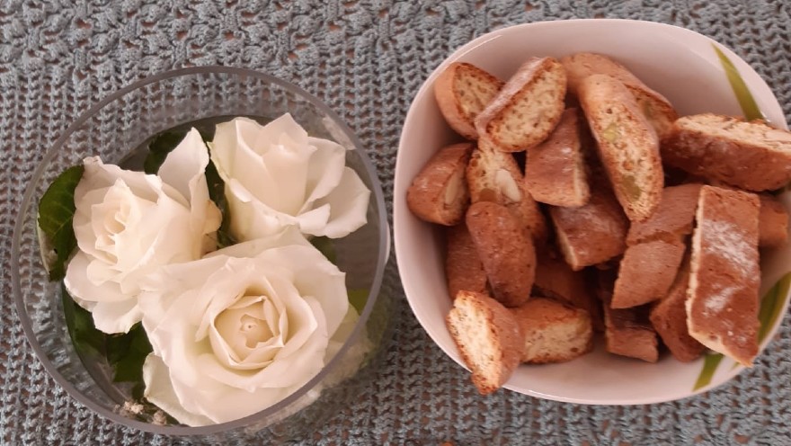 Sie hat sie hat am Sonntag 4. Oktober – am Gedenktag des Heiligen Franz von Assisi- zu unserem Mittagskaffee auf die Station gebracht. Franz von Assisi hat sich bekanntlich wenige Tage vor seinem Tod diese „Cantuccinis“ gewünscht. Er, der viel gefastet hat, gönnte sich diese süße Speise: Mandelkekse.