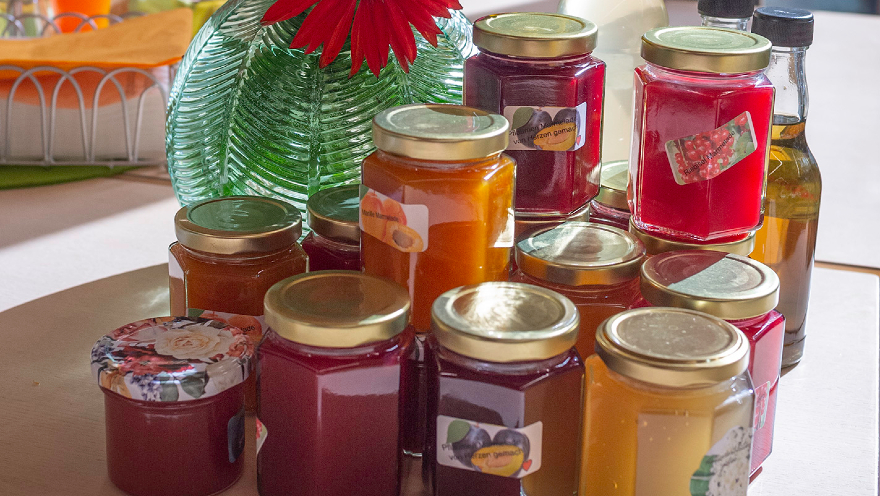 Dazu kam es leider nicht, denn jemand anderer war ihr zuvorgekommen. Im Gespräch erzählte mir Frau Steckholzer von ihrer Leidenschaft, aus biologischen Früchten und Kräutern allerlei Säfte, Marmeladen und Gelees zu zaubern – und prompt brachte sie uns viele liebevoll beschriftete „Kostproben“. Diese habe ich auf der Station und im Tageshospiz verteilt und möchte mich im Namen unserer Patient*innen und im Namen der THG ganz herzlich bei ihr bedanken! – Alle, die bereits davon genascht haben sind sich einig: es schmeckt köstlich! Vielen, vielen Dank!