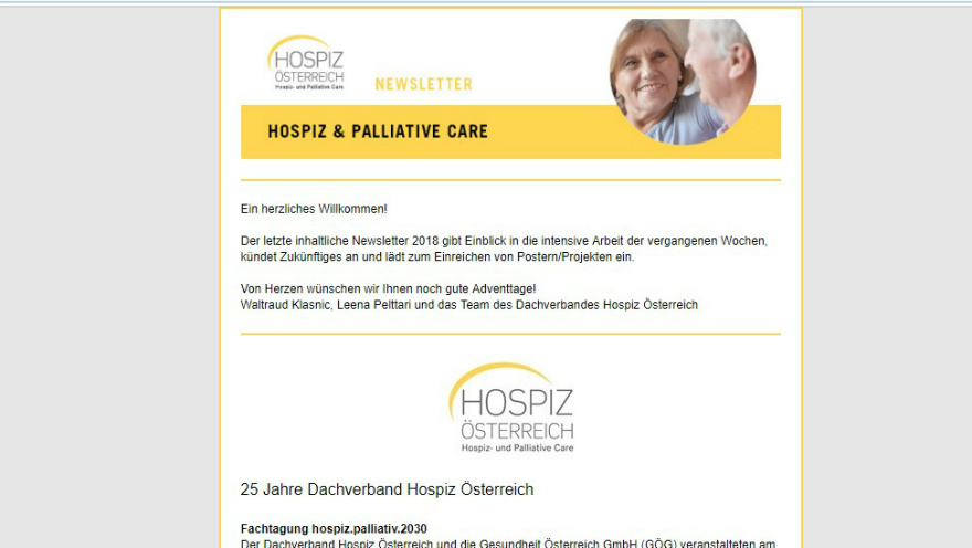 Der aktuelle Newsletter des Dachverbandes Hospiz Österreich gibt einen aktuellen Überblick über die Entwicklung der Hospizarbeit in Österreich.