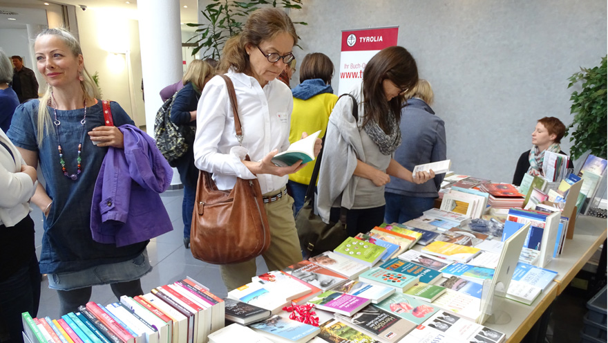In den Pausen hatten Interessierte die Möglichkeit, bei einer bunten Auswahl an Literatur, die von der Tyrolia zur Verfügung gestellt wurde, sich zu vertiefen. In diesem Link können Sie die Literaturliste einsehen.