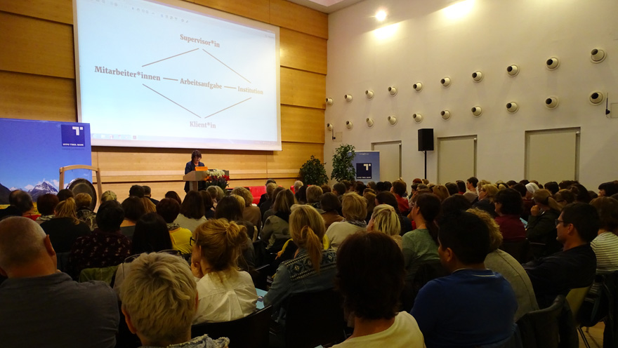Margot Scherl, MAS, selbst als Supervisorin und Lehrsupervisorin tätig, stellte die Möglichkeit von Supervision als Unterstützung im Betreuungsalltag heraus. Mit kritischem Blick zeigte sie in ihren Ausführungen auf, in welchem Spannungsverhältnis Betreuende sich aktuell befinden.
