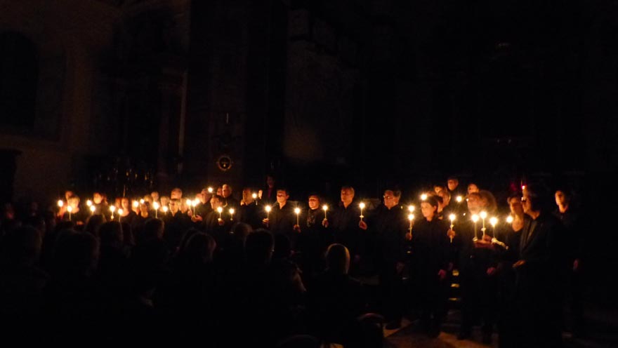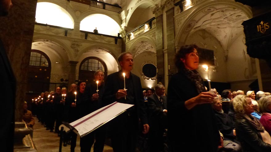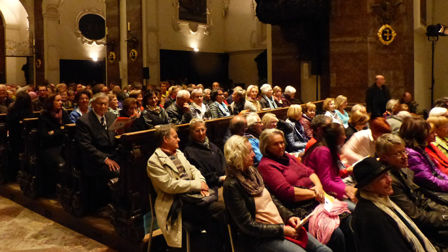 Der renommierte Dirigent und Komponist Peter Jan Marthé verwandelte am 5. Oktober 2016 mit seinem im Brixener Dom erfolgreich uraufgeführten Oratorium – Klangdom der heiligen Hildegard – die Innsbrucker Jesuitenkirche in eine einzigartige „Kathedrale der brausenden Harmonien und Klänge“. Die 450 BesucherInnen in der ausverkauften Kirche zeigten sich von dem Abend tief beeindruckt und begeistert.