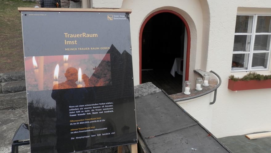In der Karwoche wurde in Imst zum ersten Mal ein TrauerRaum am Beginn des Weges über das Bergl geöffnet. Viele Menschen haben einen Ort gefunden, an dem sie ihrer Trauer, aber auch ihrer Sehnsucht nach Ruhe und Frieden Raum und Zeit geben konnten. Nach Abschluss des TrauerRaumes wurden die Bitten und Klagen aber auch der Dank, die von den BesucherInnen in die Klagemauer gesteckt wurden, von der Hospizgruppe mit einem Gebet verbrannt.