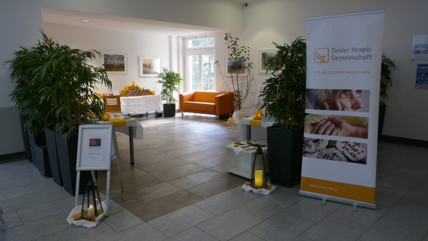 Wir möchten uns ganz herzlich für die tolle Zusammenarbeit mit der Tiroler Hospiz-Gemeinschaft bedanken, ein besonderer Dank geht an die 4 Ehrenamtlichen Hospizbegleiterinnen und die Koordinatorin Frau Renate Fuchs für die Unterstützung und die liebevolle und gelungene Umsetzung und Betreuung des Trauer Raums.