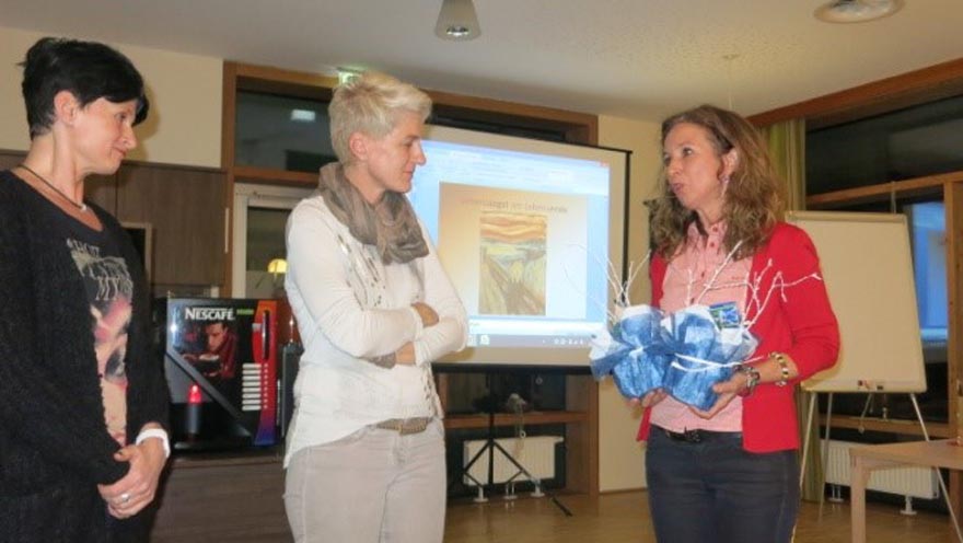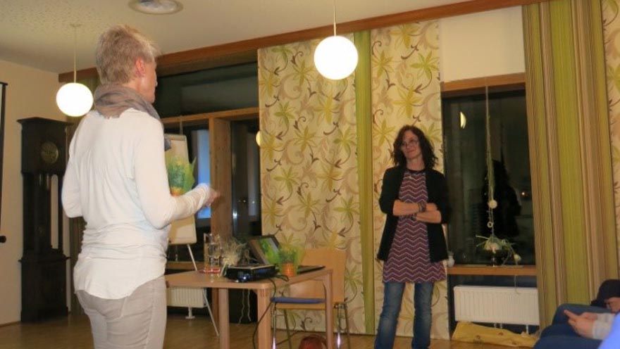 Unsere Gruppe Mittleres Oberinntal Mieminger Plateau mit der Gruppenleiterin Maria-Luise Randolf und das Sozialzentrum Haiming luden zur gemeinsamen Veranstaltung unter Mitwirkung unserer Koordinatorin des Oberlandes Annelies Schneider und der Gruppenleiterin aus dem Ötztal Susanne Riml ein. Frau Mag. Elisabeth Draxl erzählte anschauliche Beispiele aus Ihrer Praxis im Hospiz. Mit viel Einfühlungsvermögen wurden anschließend Fragen aus dem Publikum beantwortet. Pflegedienstleiterin Michaela Grüner wurde von „unserer“ Annelies ein Blumengruß, als Dank für die tolle gemeinsame Zusammenarbeit überreicht. Es wurde auch den beiden Gruppenleiterinnen Maria-Luise und Susanne für ihre ehrenamtliche Tätigkeiten gedankt.