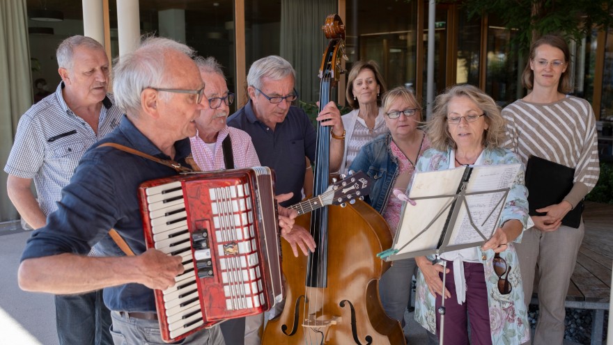 Das Ensemble HEIM@Klang und Instrumentalist*innen hat uns im Rahmen des SingCafé am Donnerstag, 2. September 2021 mit Liedern aus allen Zeiten vor dem Hospizhaus einen unvergesslichen Nachmittag geschenkt.