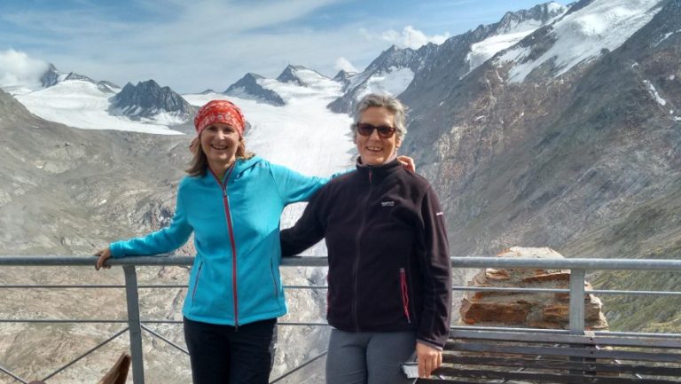 Zwei Frauen, eine sitzt im Rollstuhl
