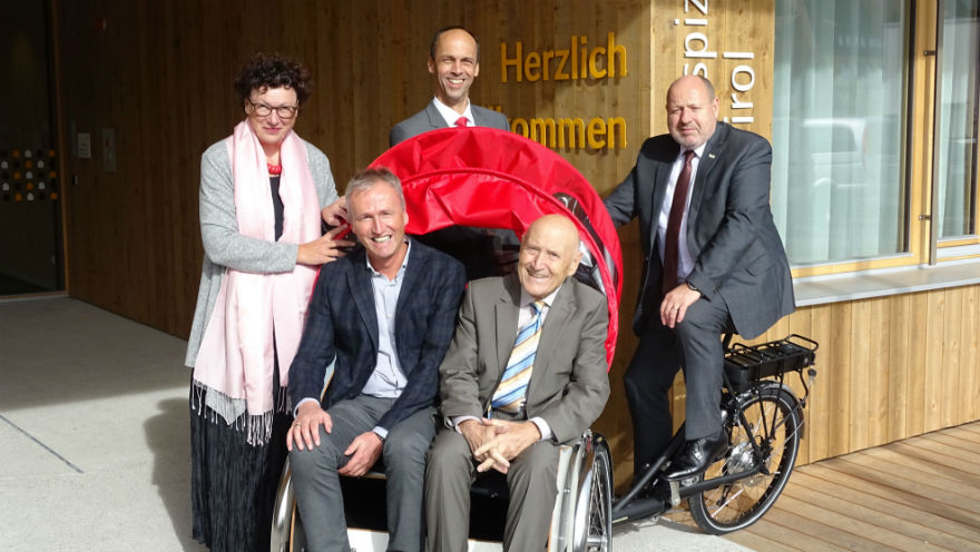 „Die segensreiche Arbeit der Hospiz-Gemeinschaft kann gar nicht hoch genug bewertet werden. Diese Organisation garantiert liebevolle und zugleich professionelle Begleitung von Menschen in der letzten Lebensphase. Wir unterstützen sie daher aus tiefster Überzeugung schon seit vielen Jahren“, stellt Vorstandsvorsitzender Walter Schieferer fest. „Die Idee eine Fahrrad-Rikscha fürs Hospizhaus Tirol anzuschaffen, hat uns von Anfang an gefallen. Wir hoffen, dass viele Betroffene dieses neue Angebot für einen Ausflug ins Grüne nützen,“ ergänzt Vorstandsdirektor Franz Mair.