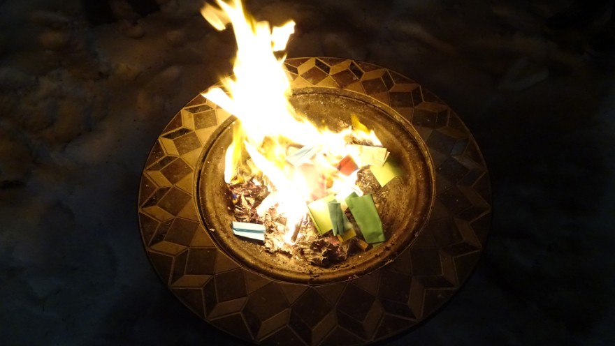 Zum Abschluss der TrauerRäume treffen sich die Hospizteams und verbrennen Klagen Versöhnungsbänder. Das Innsbrucker TrauerRaum-Team hat das heuer Mitte Jänner gemacht und gemeinsam auf 5 Jahre TrauerRaum zurückgeblickt. DANKBAR UND ERFÜLLT!