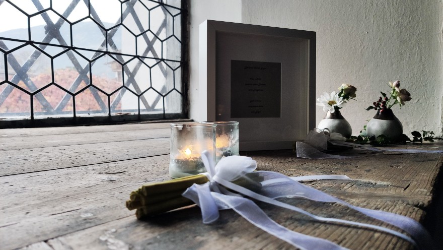Das Hospizteam unter der Leitung von Elisabeth Ladner stand vor der Herausforderung, schnell und einfach einen Ersatz für den TrauerRaum, der bisher im Widum gestaltet wurde, zu finden. Unter den gegebenen Umständen bot sich der Portalbereich der Pfarrkirche Inzing für die Umsetzung an. So kam dieses Jahr die «light-Version» des bisherigen TrauerRaums in die Pfarrkirche und lud die Besucher zum Innehalten ein.