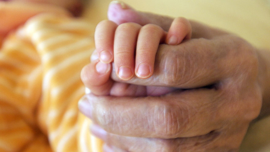 Frau Anna ist Patientin auf der Hospiz- und Palliativstation. Heute bekommt sie Besuch von Raphael, ihrem jüngsten frisch geborenen Enkel. Raphael weint und schreit, was das Zeug hält. Der Patenonkel versucht ihn zu beruhigen. Ohne Erfolg. Raphael wird zu seinem Vater weiter gereicht. Aber er schreit weiter. Das Kind landet in den Armen seiner Mutter. Auch sie vermag das kleine Elend nicht zu beruhigen. Schließlich liegt Raphael in den Armen seiner kranken Oma. Von einer Sekunde auf die andere hört Raphael auf zu schreien. Er liegt friedlich, bald schlafend am Herzen der kranken Oma.
