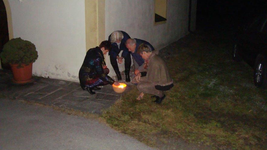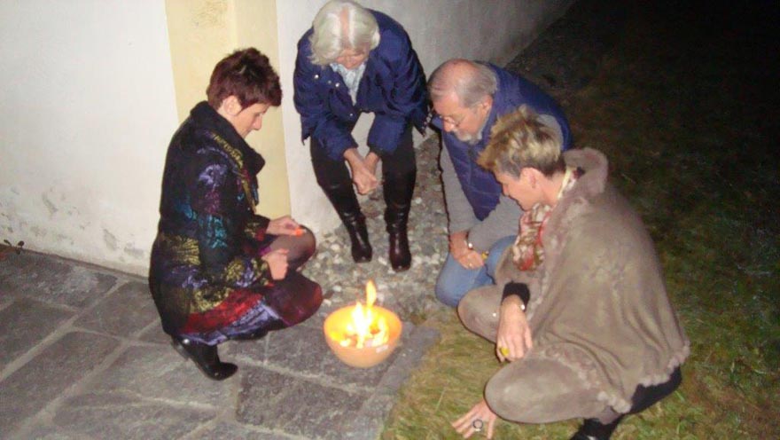 Noch am Allerseelen-Abend trafen sich einige unserer Hospizgruppe Ötztal bei einer kleinen Kapelle , um die niedergeschriebenen Gedanken, welche in der Trauermauer unseres Trauerraumes deponiert wurden, dem Feuer zu übergeben.