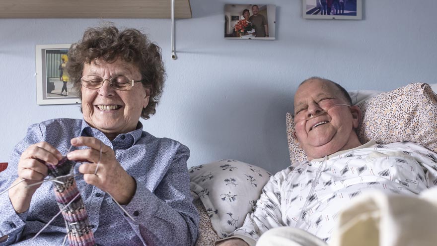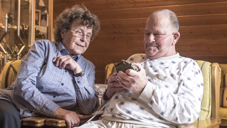 Rund um den Jahreswechsel ging es Willi zusehends schlechter und er musste wegen Atemnot ins Krankenhaus. Reingard, seine Frau, wollte ihn aber wieder nach Hause holen. „Was die tun, können wir auch“, meinte sie und kontaktierte das Mobile Palliativteam. „Für Patienten mit chronischen Lungenerkrankungen können harmlose Infekte schnell gefährlich werden“, erklärt Roland Klinger, Diplomkrankenpfleger im Mobilen Palliativteam. In regelmäßigen Abständen kam das Team zu den Essers nach Hause, um den Gesundheitszustand von Willi Essers im Auge behalten zu können. Die 24-Stunden-Rufbereitschaft des Mobilen Palliativteams gab den beiden zusätzliche Sicherheit. Seine besten Freunde und sein größtes Hobby, das Sammeln von Mineralien, hatte Willi unter Tag gefunden. „Meine bestes Stück, meine große Liebe Reingard“, meinte er augenzwinkernd, „hab ich aber über Tag in Stans in Tirol gefunden.“