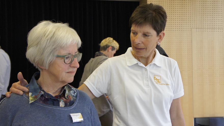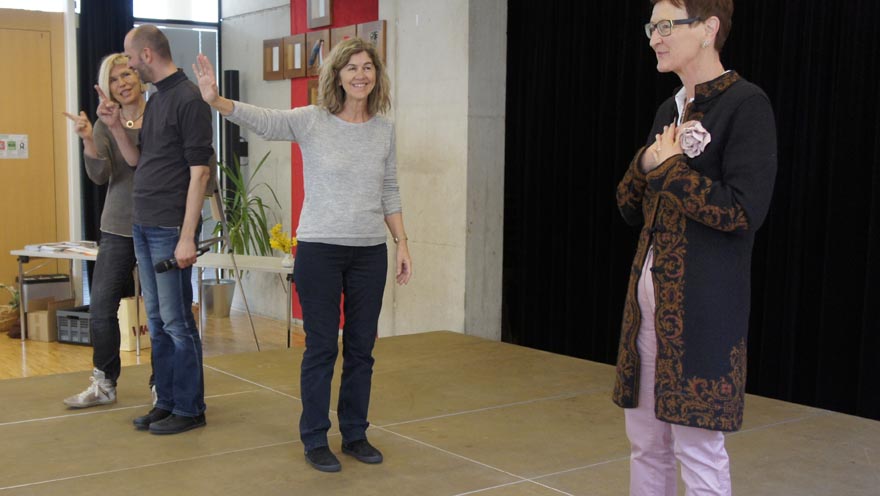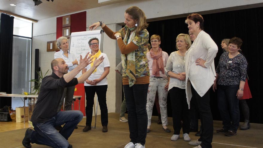 Im Zentrum des Tages stand die Beschäftigung mit der Frage, „Wer bin ich und was tu ich? Meine Rolle als ehrenamtliche/r HospizbegleiterIn. Dieser Themenbereich wurde unter anderem mit einem interaktiven Theater unter der Leitung von Armin Staffler erarbeitet, bei dem sich die Ehrenamtlichen gut einbrachten. Ein achtsamer Umgang mit der eigenen Personen und den Menschen, die wir begleiten sind von großer Bedeutung.