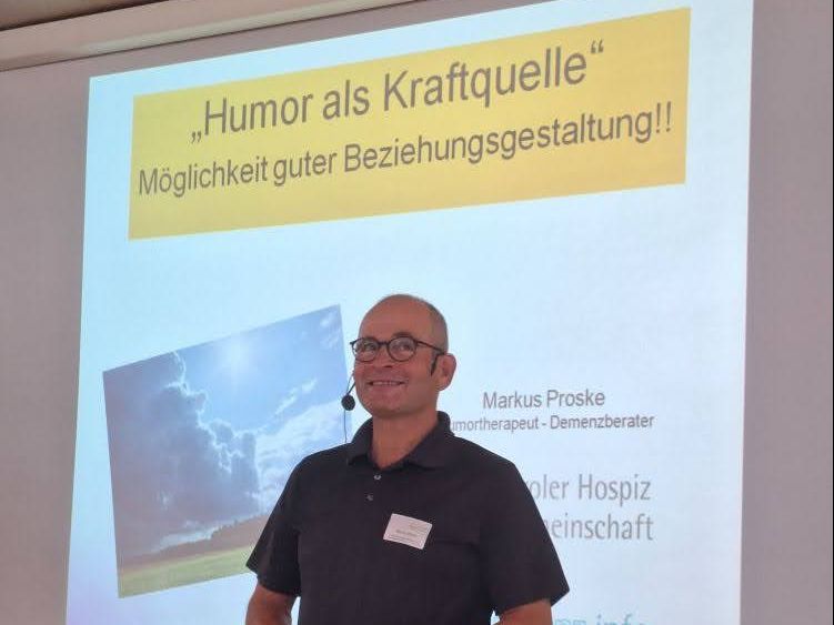 Nach dem Dankesgruß von Frau Vorstandsvorsitzender Marina Baldauf und Frau Pflegedirektorin Christine Haas Schranzhofer, MSc., MSc., beflügelte, unterhielt und berührte uns Herr Markus Proske (Humortherapeut und Demenzberater)mit seinem Vortrag „Humor als Kraftquelle und Möglichkeit guter Beziehungsgestaltung“.