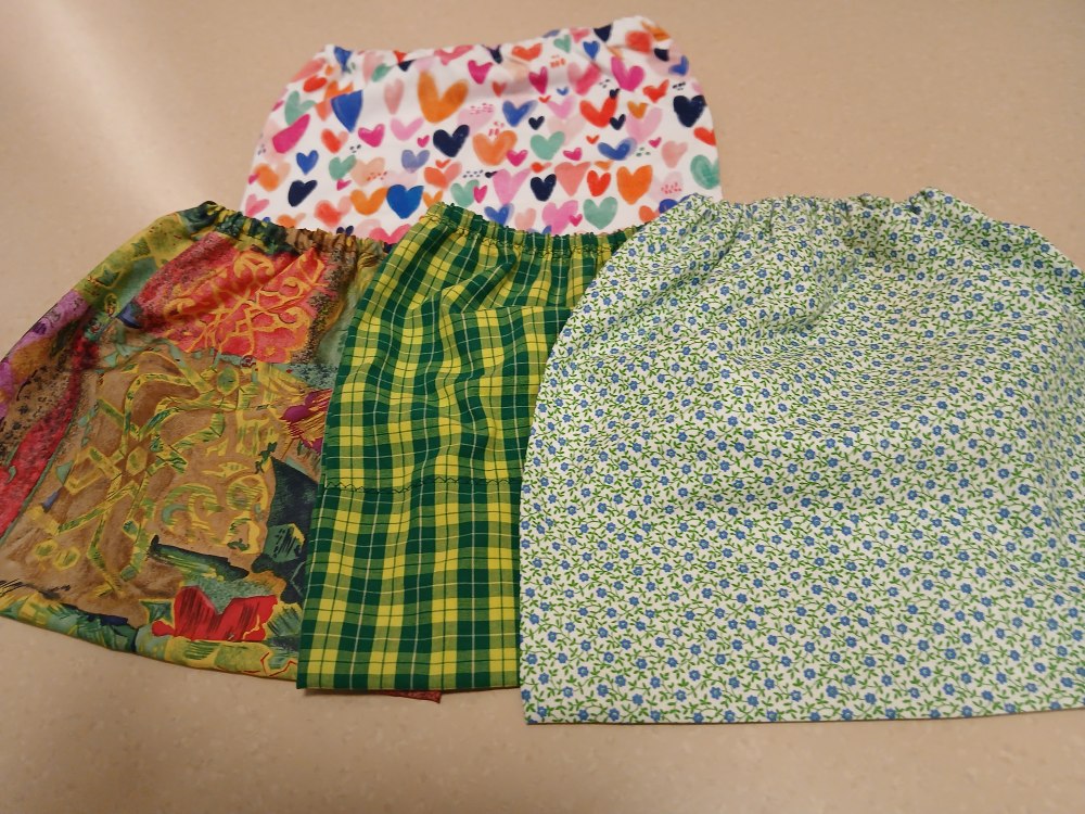 Martha, Leny und Sylvia haben für uns Überzüge für die dazu notwendigen Urinsäckchen genäht. Vielen Dank für diese farbenfrohen Überzüge. Für viele Menschen ist das eine große Erleichterung und bedeutet Lebensqualität. Danke, für dieses besondere ehrenamtliche Engagement.