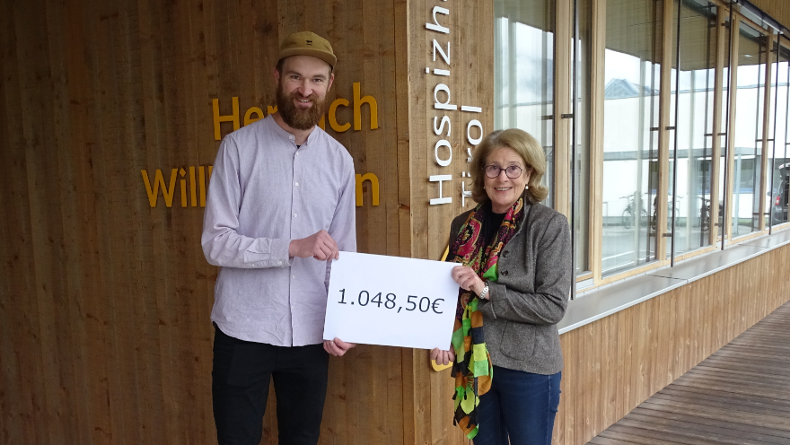 Bastian Mensing und Vorsitzende Marina Baldauf freuen sich über die großzügige Unterstützung unserer Hospizarbeit.