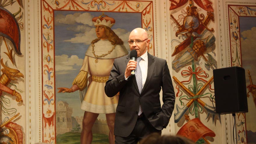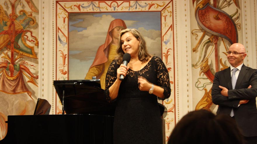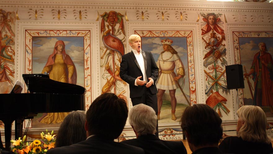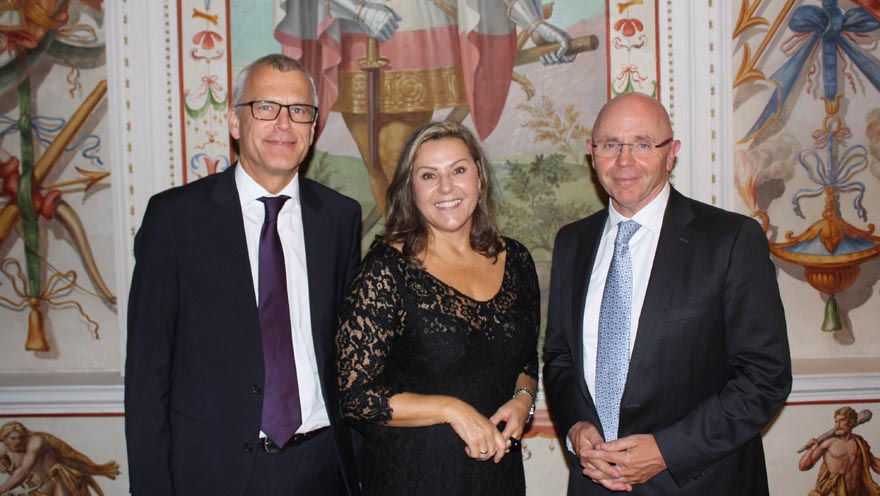 Kurt Leidinger (Sprecher des Vorstandes der SCHENKER & Co AG, links), Dr. Elisabeth Zanon (Vorsitzende der Tiroler Hospiz-Gemeinschaft) und Dir. Manfred Zaletel (Geschäftsleiter – Schenker Innsbruck und der Niederlassung in Röthis/Vorarlberg, rechts) freuten sich über ein gelungenes 16. DB Schenker Herbskonzert im Spanischen Saal mit dem international bekannten Tiroler Bariton Andreas Mattersberger. Elisabeth Zanon dankte der DB Schenker und allen Anwesenden für die großzügige Unterstützung für den Neubaus des Hospizhauses Tirol.