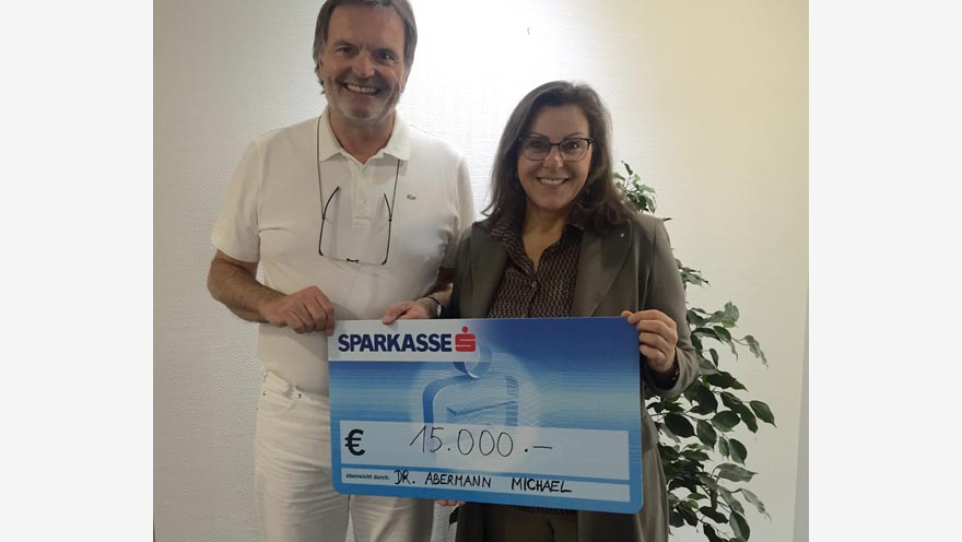 Dr. Abermann spendete den Erlös des Zahngoldes seiner PatientInnen in der Höhe von 15.000 Euro für den Neubau des Hospizhauses Tirol, das zu einer Verbesserung der Versorgung in allen Regionen Tirols beiträgt. Vielen herzlichen Dank dafür!