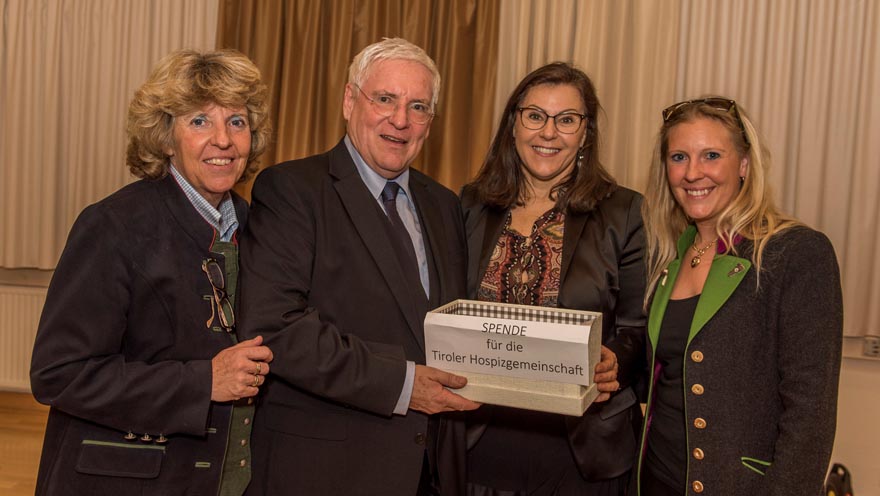 Dr. Karin Bauer, Militärkommandant von Tirol Mag. Herbert Bauer, Dr. Elisabeth Zanon und Tochter Eva-Sophie freuen sich über die großzügige Unterstützung der Tiroler Hospiz-Gemeinschaft. Herbert Bauer bat ihm Rahmen seines 60. Geburtstages anstelle von Geschenken um eine Bausteinspende für das Hospizhaus Tirol. Insgesamt wurden 3140 Euro gesammelt. Vielen Dank für diese so wichtige Hilfe!